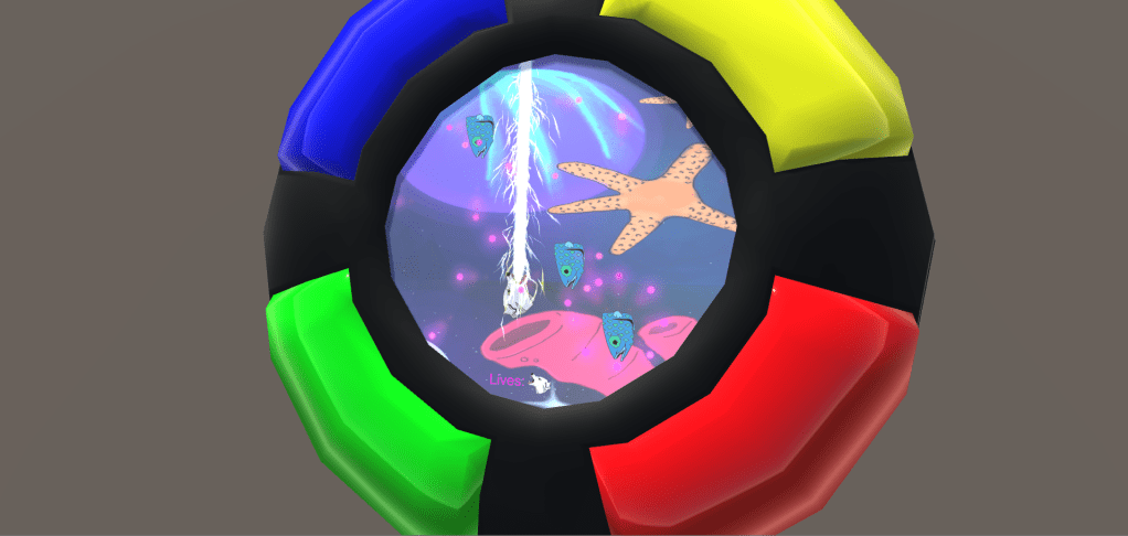 For Space Wolf 2 our main focus was making to make a weird bullet hell for an unconventional controller, the Simon X. I was responsible for the UI design/scripting, level management, as well as some Unity animations.